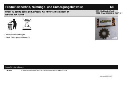 | Titel: | Ritzel 12 Zähne passt an Kawasaki Kxf 450 06-24 Klx passt an Yamaha Yzf Xt Wrf |