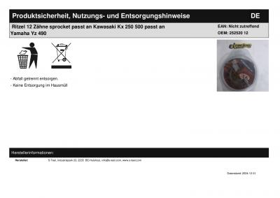 | Titel: | Ritzel 12 Zähne sprocket passt an Kawasaki Kx 250 500 passt an Yamaha Yz 490 |