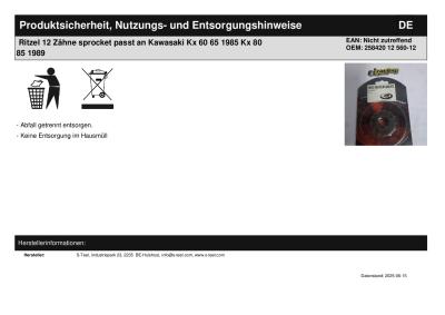 | Titel: | Ritzel 12 Zähne sprocket passt an Kawasaki Kx 60 65 1985 Kx 80 85 1989 |