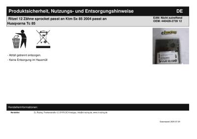 | Titel: | Ritzel 12 Zähne sprocket passt an Ktm Sx 85 2004 passt an Husqvarna Tc 85 |