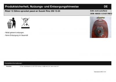 | Titel: | Ritzel 12 Zähne sprocket passt an Suzuki Rmz 250 13-24 |