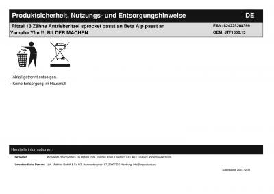 | Titel: | Ritzel 13 Zähne Antriebsritzel sprocket passt an Beta Alp passt an Yamaha Yfm |