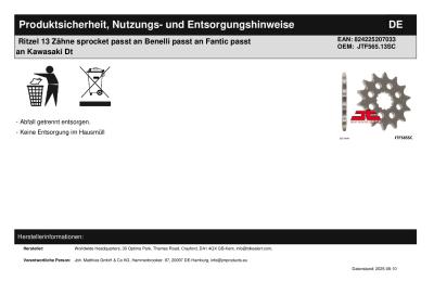 | Titel: | Ritzel 13 Zähne sprocket passt an Benelli passt an Fantic passt an Kawasaki Dt |
