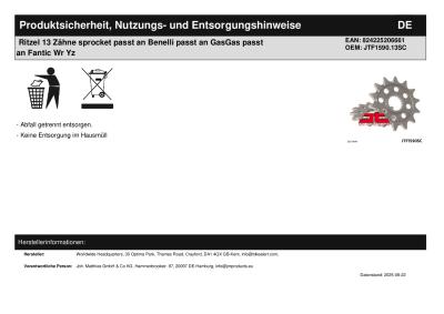 | Titel: | Ritzel 13 Zähne sprocket passt an Benelli passt an GasGas passt an Fantic Wr Yz |