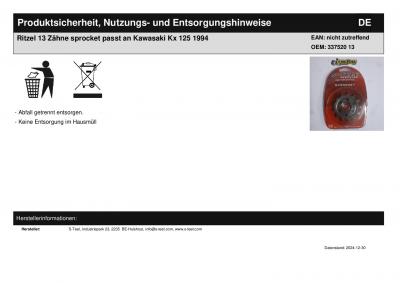 | Titel: | Ritzel 13 Zähne sprocket passt an Kawasaki Kx 125 1994 |