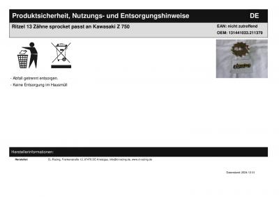 | Titel: | Ritzel 13 Zähne sprocket passt an Kawasaki Z 750 |