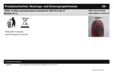 | Titel: | Ritzel 14 Zähne sprocket passt an GasGas Ec 250f 2013 alle 4T Modelle 97-12 |