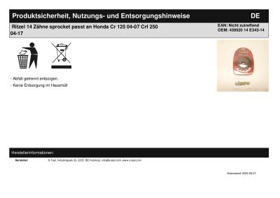 | Titel: | Ritzel 14 Zähne sprocket passt an Honda Cr 125 04-07 Crf 250 04-17 |