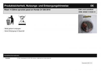| Titel: | Ritzel 14 Zähne sprocket passt an Honda Crf 250 2018 |