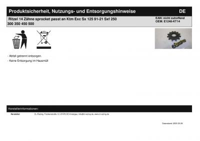 | Titel: | Ritzel 14 Zähne sprocket passt an Ktm Exc Sx 125 91-21 Sxf 250 300 350 450 500 |