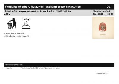 | Titel: | Ritzel 14 Zähne sprocket passt an Suzuki Dr Drz 400 passt an Kawasaki Klx 400 |