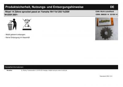| Titel: | Ritzel 14 Zähne sprocket passt an Yamaha Wrf Yzf 250 Yz250f Wr250f 2001- |