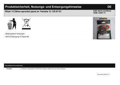 | Titel: | Ritzel 14 Zähne sprocket passt an Yamaha Yz 125 87-01 |