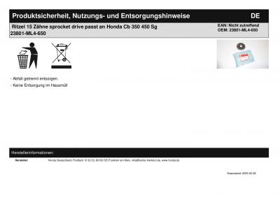 | Titel: | Ritzel 15 Zähne sprocket drive passt an Honda Cb 350 450 Sg 23801-ML4-650 |