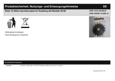 | Titel: | Ritzel 16 Zähne sprocket passt an Husaberg alle Modelle 00-08 |
