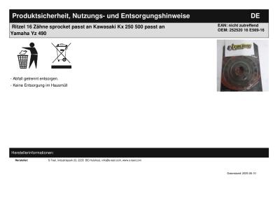| Titel: | Ritzel 16 Zähne sprocket passt an Kawasaki Kx 250 500 passt an Yamaha Yz 490 |