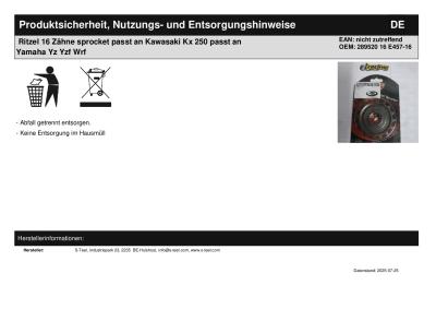 | Titel: | Ritzel 16 Zähne sprocket passt an Kawasaki Kx 250 passt an Yamaha Yz Yzf Wrf |