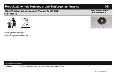 | Titel: | Ritzel 17 Zähne spocket passt an Yamaha Tx 500 1973 168-17461-70 |