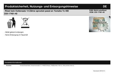 | Titel: | Ritzel kein Kettensatz 14 Zähne sprocket passt an Yamaha Yz 490 23X-17461-40 |