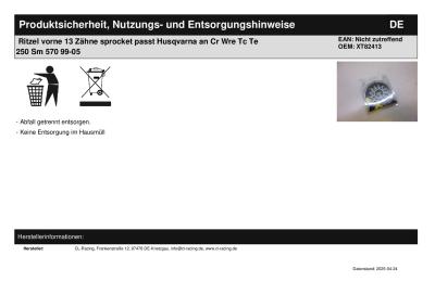 Titel: | Ritzel vorne 13 Zähne sprocket passt Husqvarna an Cr Wre Tc Te 250 Sm 570 99-05 |