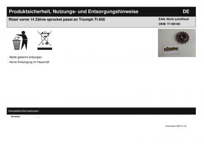 | Titel: | Ritzel vorne 14 Zähne sprocket passt an Triumph Tt 600 |
