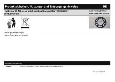 Titel: | Kettenrad 48 Zähne sprocket passt an Kawasaki Kx 125 80-08 Klx 300 Kxf 450 sw |