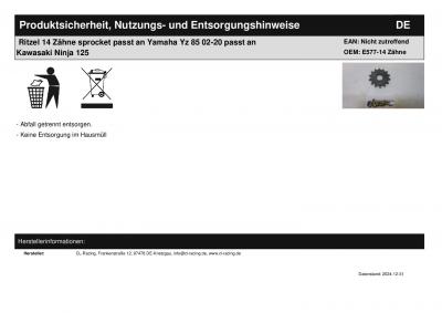 Titel: | Ritzel 14 Zähne sprocket passt an Yamaha Yz 85 02-20 passt an Kawasaki Ninja 125 |