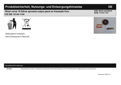 Titel: | Ritzel vorne 16 Zähne sprocket output passt an Kawasaki Kmx 125 200 13144-1144 |