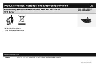 Titel: | Kettenführung Kettenschleifer chain slider passt an Ktm Exc-f 250 08-10 Sxf sw |