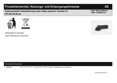 Titel: | Kettenschleifer Kettenführung chain slider passt an Yamaha Yz 125 250 93-96 sw |