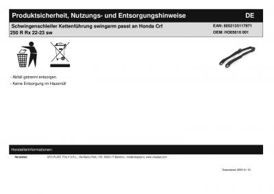 Titel: | Schwingenschleifer Kettenführung swingarm passt an Honda Crf 250 R Rx 20-25 sw |