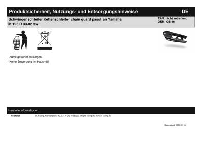 | Titel: | Schwingenschleifer Kettenschleifer chain guard passt an Yamaha Dt 125 R 88-02 sw |