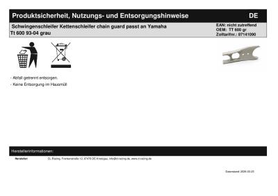| Titel: | Schwingenschleifer Kettenschleifer chain guard passt an Yamaha Tt 600 93-04 grau |