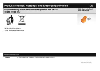 Titel: | Auspuffhalterung muffler exhaust bracket passt an Ktm Sx Exc 125 250 300 98-24or |