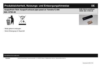 Titel: | Auspuffrohr Rohr Auspuff exhaust pipe passt an Yamaha Fj 600 49A-1475K-00 |