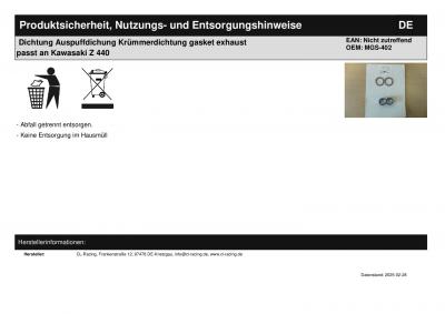 Titel: | Dichtung Auspuffdichung Krümmerdichtung gasket exhaust passt an Kawasaki Z 440 |