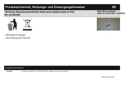 Titel: | Dichtung Wasserpumpendeckel water pump gasket passt an Ktm 451.35.053.000 |