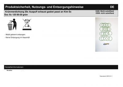Titel: | Krümmerdichtung 20x Auspuff exhaust gasket passt an Ktm Sx Exc Xc 125 00-20 grün |