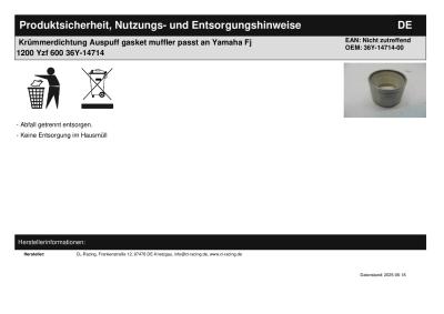 Titel: | Krümmerdichtung Auspuff gasket muffler passt an Yamaha Fj 1200 Yzf 600 36Y-14714 |