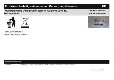 Titel: | Krümmerdichtung O-Ring muffler passt an Husqvarna Cr Wr 250 M753504183094 |