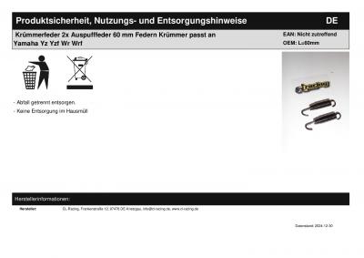 Titel: | Krümmerfeder 2x Auspufffeder 60 mm Federn Krümmer passt an Yamaha Yz Yzf Wr Wrf |