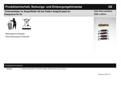 Titel: | Krümmerfeder 4x Auspufffeder 60 mm Federn Auspuff passt an Husqvarna Fe Te |