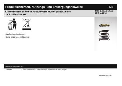 Titel: | Krümmerfedern 60 mm 4x Auspufffedern muffler passt Ktm Lc4 Lc8 Exc Exc-f Sx Sxf |