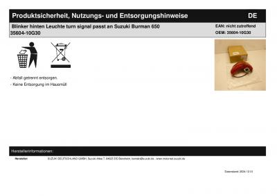| Titel: | Blinker hinten Leuchte turn signal passt an Suzuki Burman 650 35604-10G30 |
