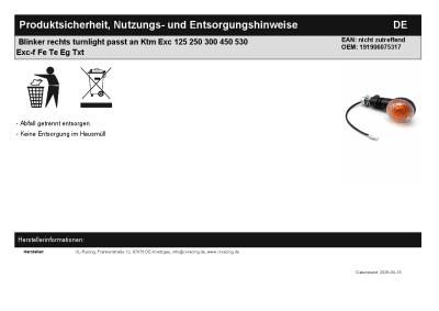 | Titel: | Blinker rechts turnlight passt an Ktm Exc 125 250 300 450 530 Exc-f Fe Te Eg Txt |