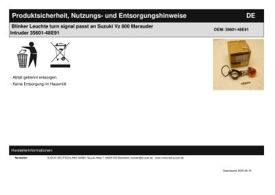 | Titel: | Blinker Leuchte turn signal passt an Suzuki Vz 800 Marauder Intruder 35601-48E91 |