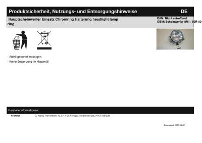 | Herstellernummer: | Scheinwerfer 8R1 / 50R-001635 |