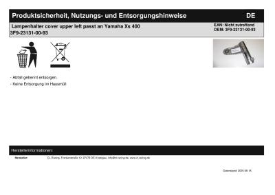 | Titel: | Lampenhalter cover upper left passt an Yamaha Xs 400 3F9-23131-00-93 |