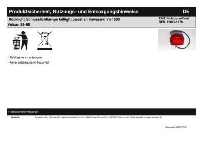 Titel: | Rücklicht Schlusslichtlampe taillight passt an Kawasaki Vn 1500 Vulcan 88-95 |