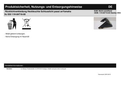 Rücklichtverkleidung Heckleuchte Schlusslicht passt anYamaha Xz 550 11H-84716-00